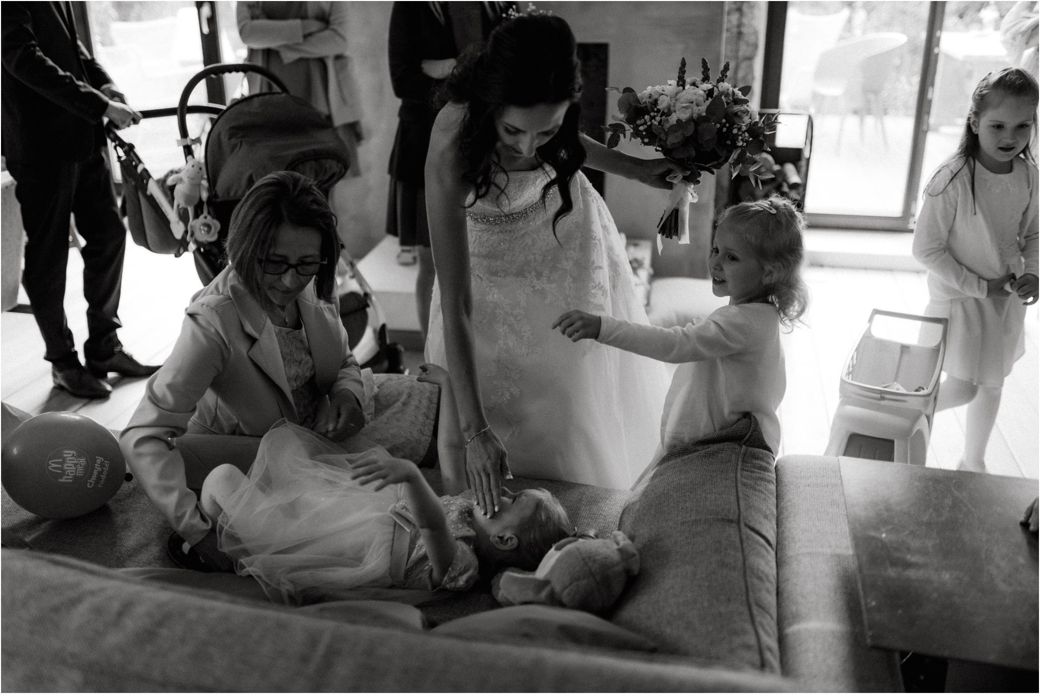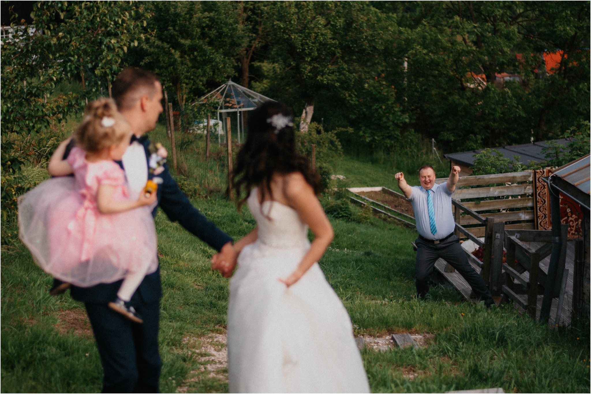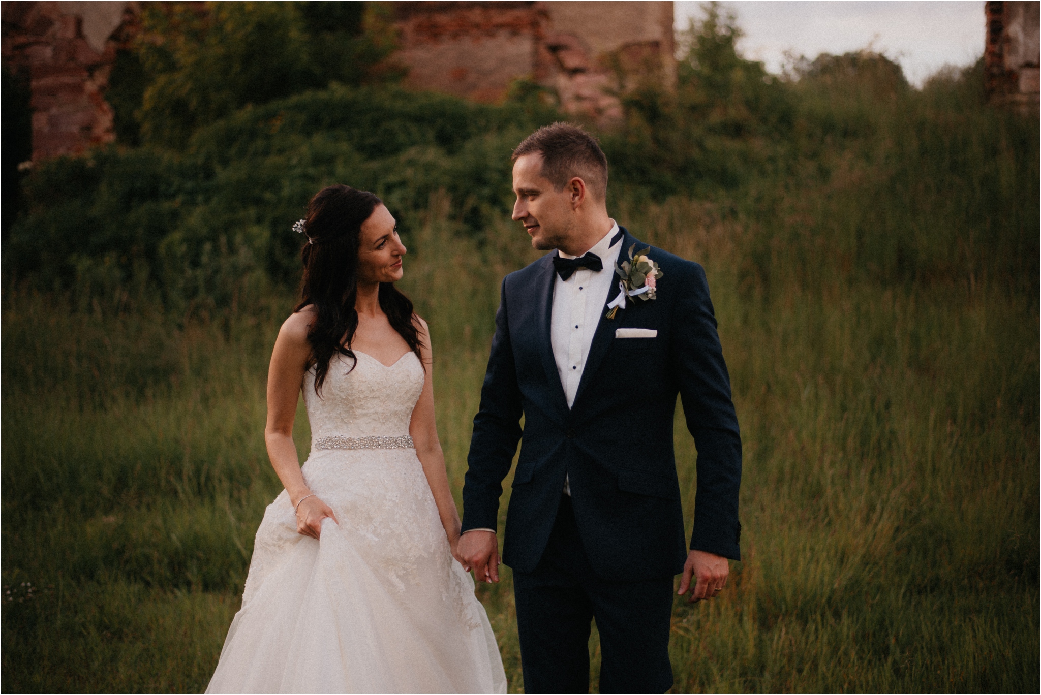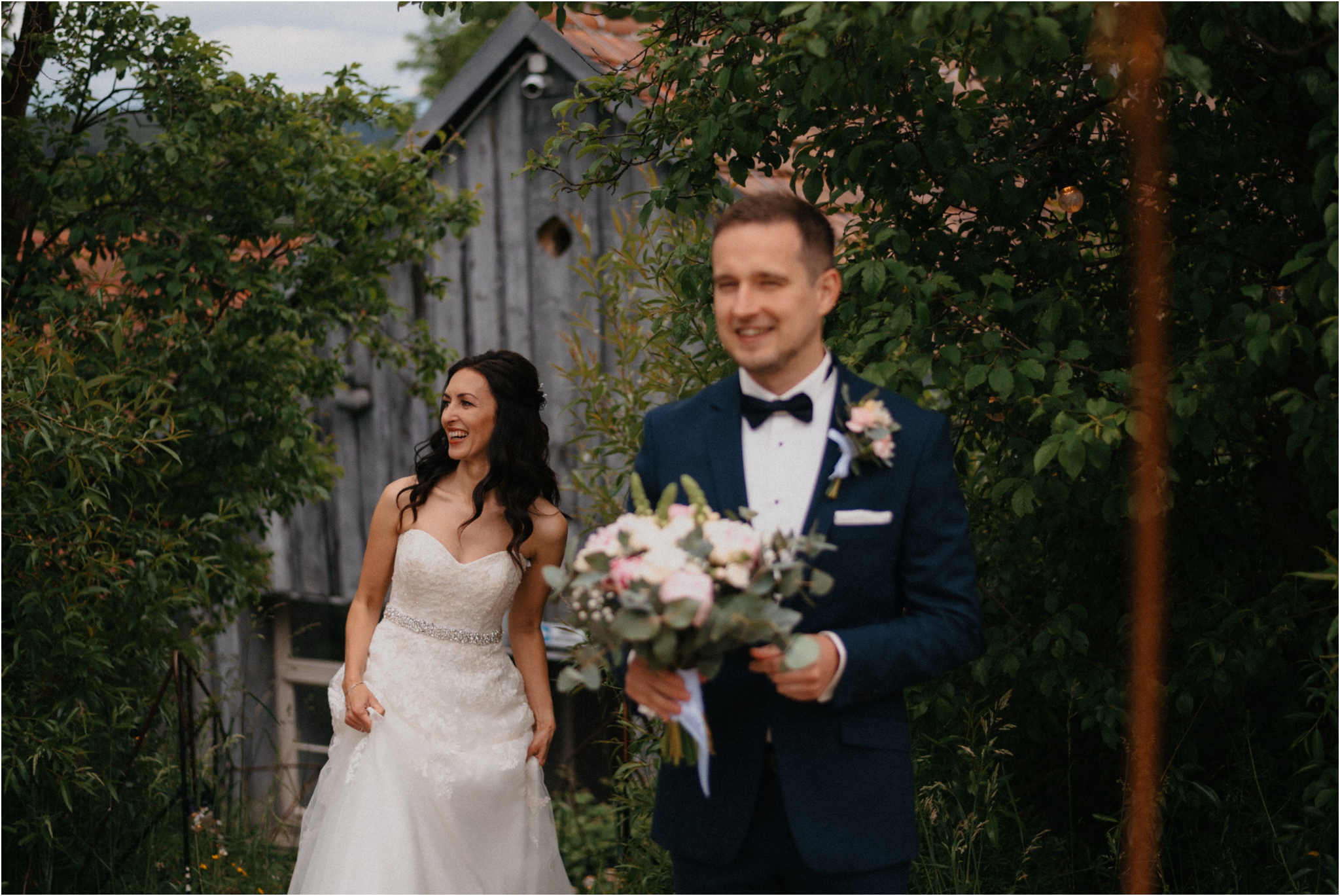 Polna jest miejscem przeznaczonym na niewielkie wesela. Ma to swoje wady i zalety, choć tych drugich jest zdecydowanie więcej. Przy ograniczonej ilości gości jest pewność, że otaczamy się tymi najbliższymi z najbliższych. Wydaje mi się, że w takim towarzystwie zupełnie inaczej, jakby mocniej odbiera się wartość metafizyczną ślubu. Czy tak mały ślub musi być nudny? Oczywiście, że nie! Każdy może czuć się swobodnie, niemal wszyscy goście się znają, łatwiej o niepohamowane wzruszenia, głośny śmiech i fale ciepłych wspomnień opowiadanych na werandzie w przerwie między setami muzycznymi. A skoro o tańcach mowa to co na parkiecie się działo! Nie było stania pod ścianą, każdy dał się ponieść pozytywnym wibracjom płynącym z głośników .
