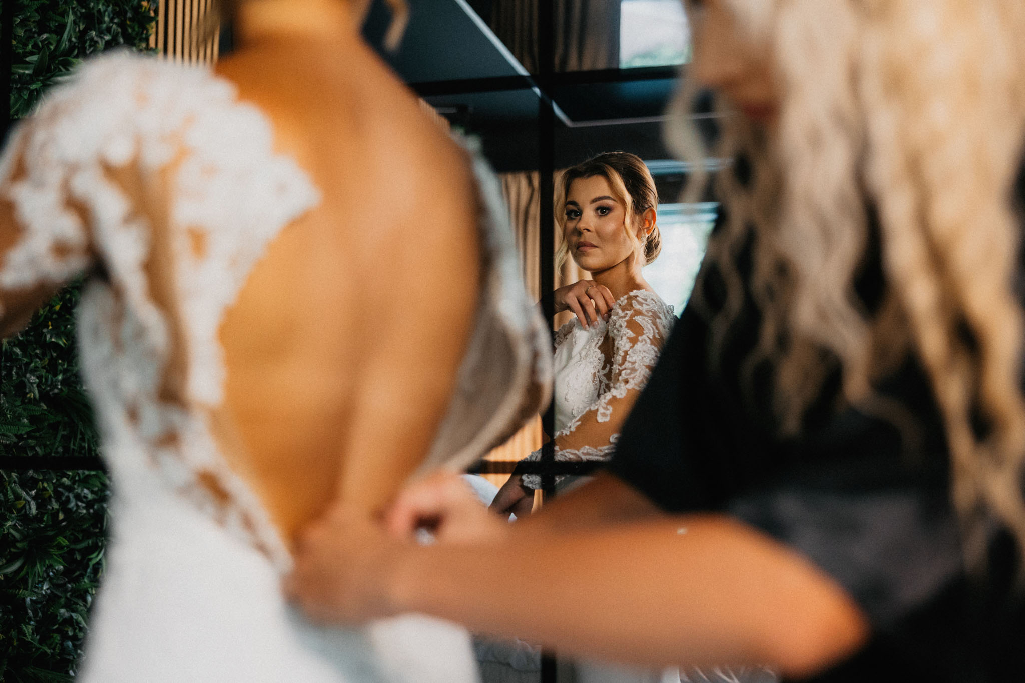 Ludzie często próbują zamknąć reportaż ślubny w jakiejś checkliście. Przygotowania, ceremonia, pierwszy taniec, tort, parkiet. Wszystko „ma być”. Tylko, że to tak nie działa. To, że dzień ma podobny przebieg, nie znaczy, że zdjęcia będą podobne. Bo tu nie chodzi o punkty programu, tylko o to, kto stoi za aparatem. Oczywiście są artyści na rynku, którzy realizują fotografię ślubną wg wypracowanego schematu i nie ma przestrzeni na spontaniczność bo te sprawdzone kadry trzeba wypracować przez obie strony.