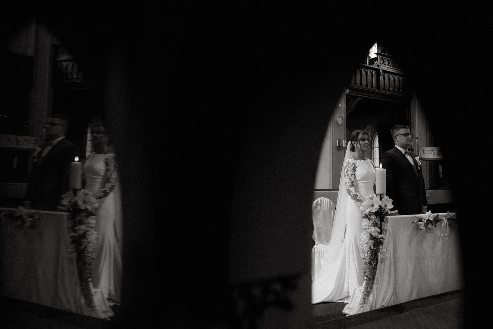 Na ślubie Magdy i Mateusza udało się przeprowadzić fascynujący (dla mnie :)) eksperyment. Pracowałem równolegle z ekipą foto-video – wspaniali ludzie o zupełnie innym spojrzeniu na ślub. Ten sam dzień, te same momenty, często dosłownie obok siebie. A mimo to finalnie powstały dwa różne reportaże.